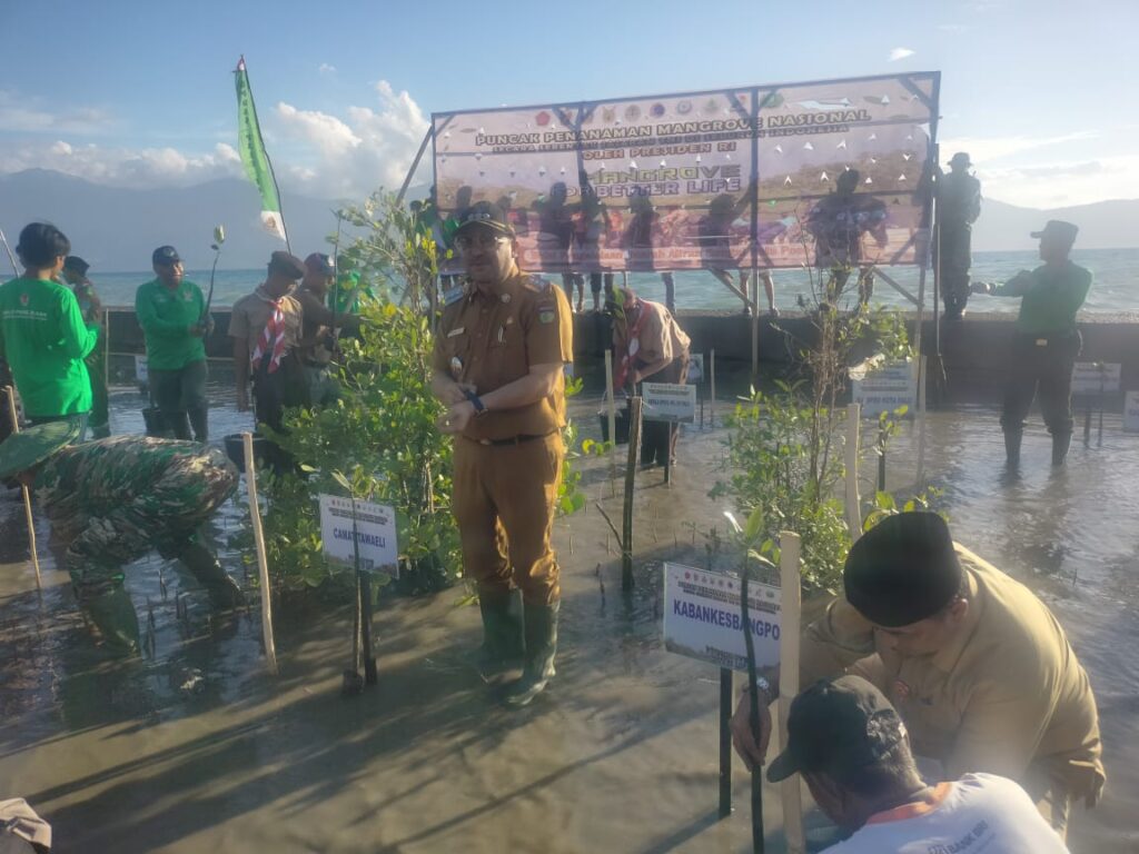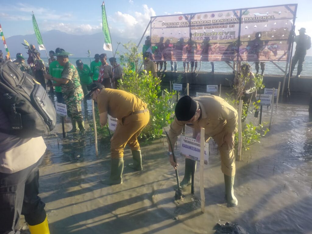 Dalam rangka mendukung program rehabilitasi hutan Mangrove di Indonesia, Camat Tawaeli ikut serta dalam kegiatan Puncak penanaman Mangrove Nasional yang di gelar oleh Kodim 1306/Kota Palu, Senin (15/05/2023). Bersama sejumlah Pejabat dilingkup pemerintahan Kota Palu,Polres Palu,Polsek Palu Utara dan Kelurahan Mpanau, Camat Tawaeli lakukan penanaman bibit mangrove di Pantai Bamba Kelurahan Mpanau Kecamatam Tawaeli Kota Palu. Acara kemudian dilanjutkan dengan Video Conference oleh Pesiden Republik Indonsia.